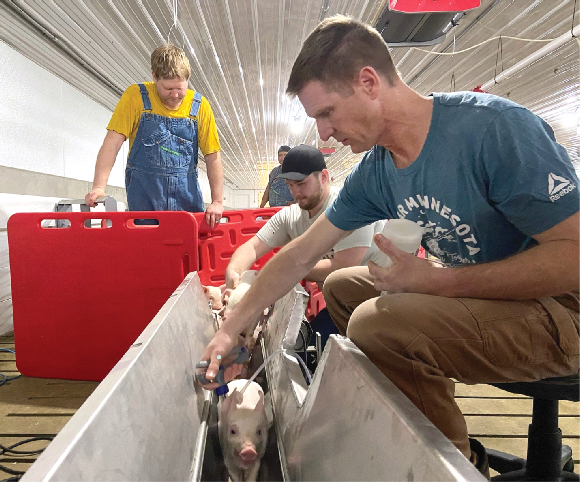 Hennen has a finishing barn near Ghent that holds about 750 pigs and sells breeding stock in Minnesota and the Dakotas for a genetics company. He said his device solves a big problem for farmers: How do they restrain pigs during the vaccination process.